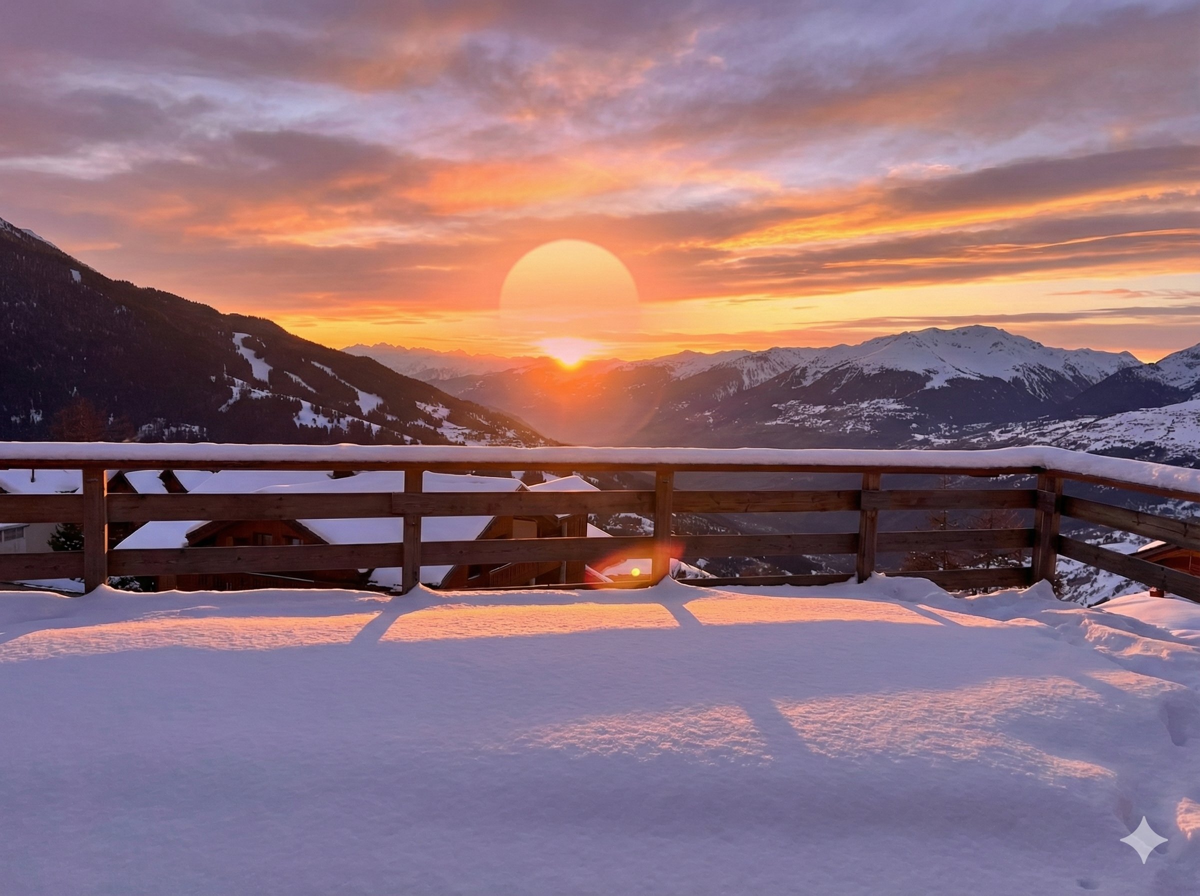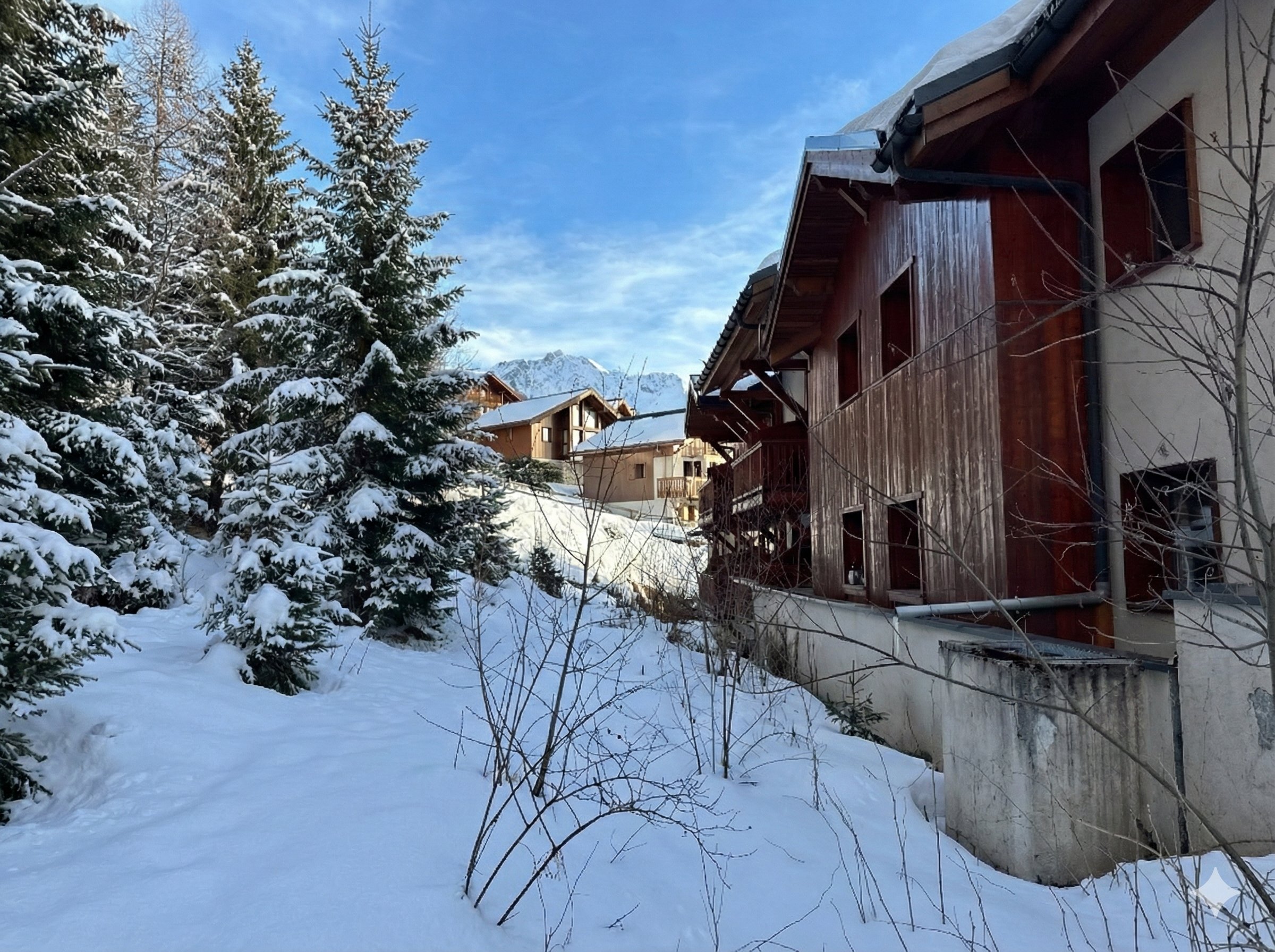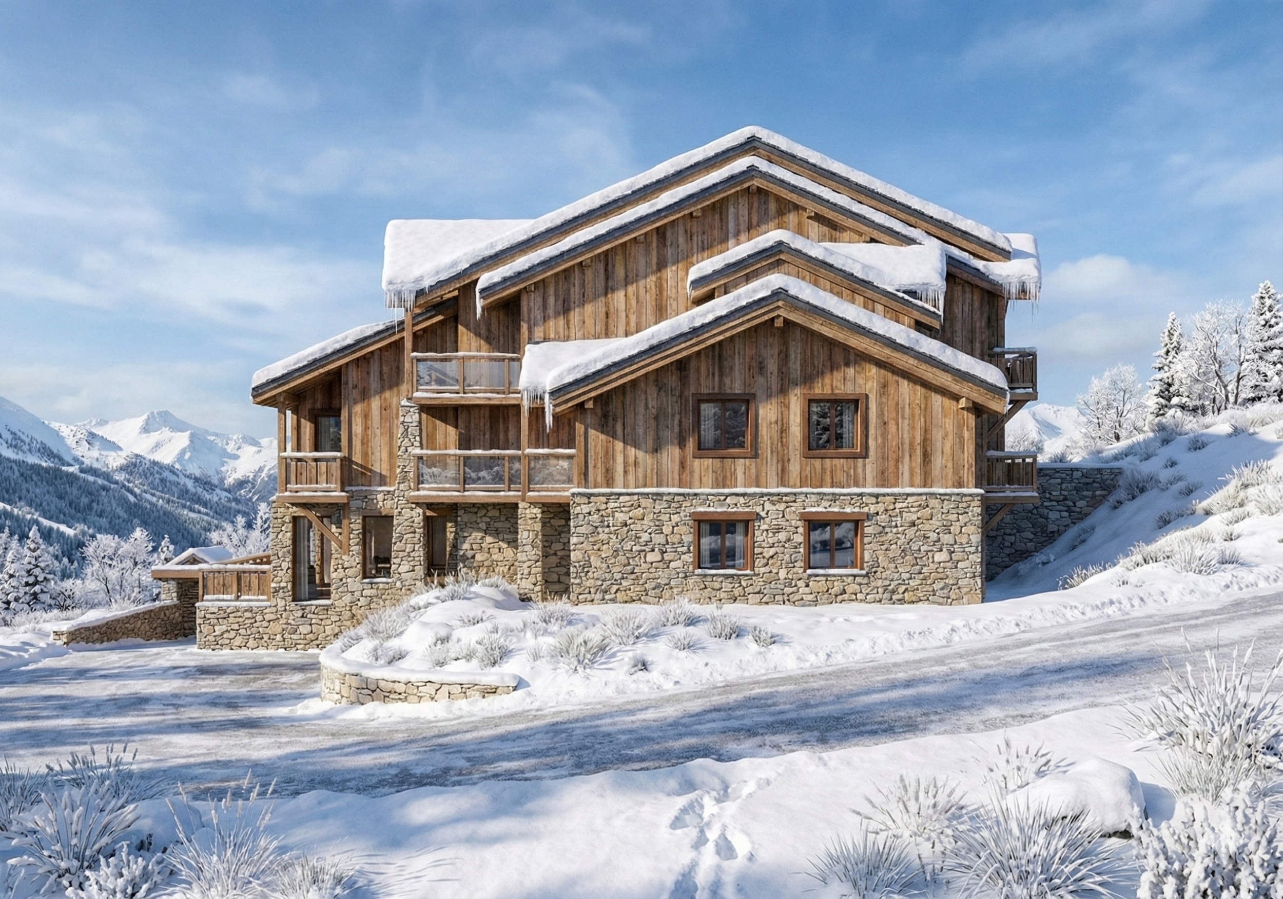 Plusieurs logements s'ouvrent sur de magnifiques terrasses panoramiques pensées comme une véritable prolongation du séjour, offrant des vues dégagées sur le paysage alpin.