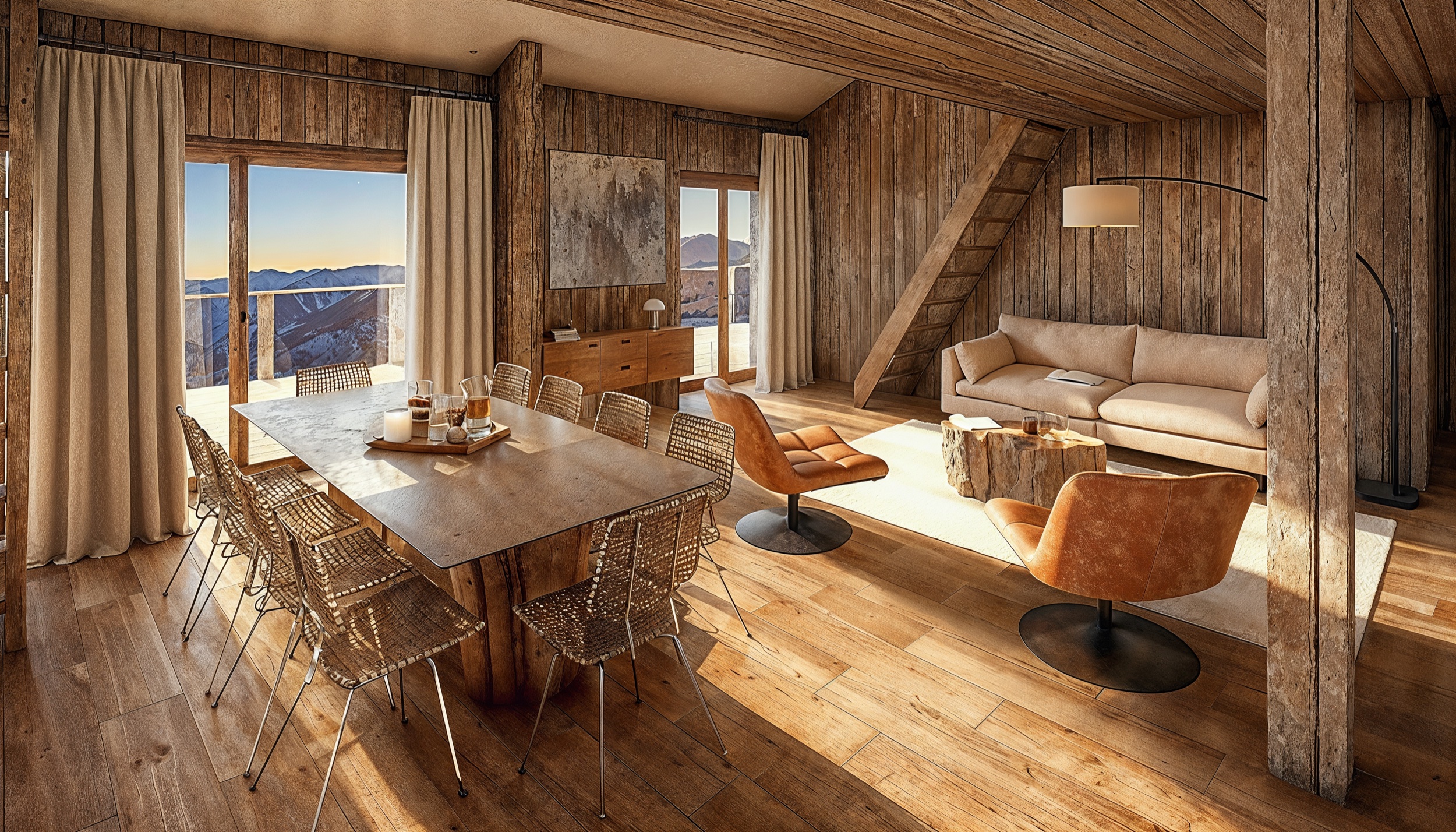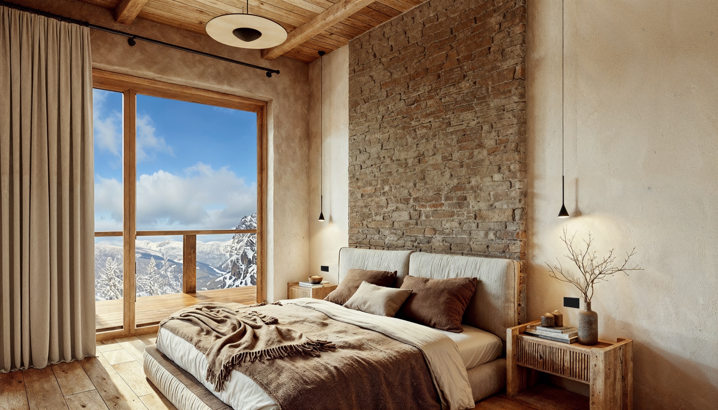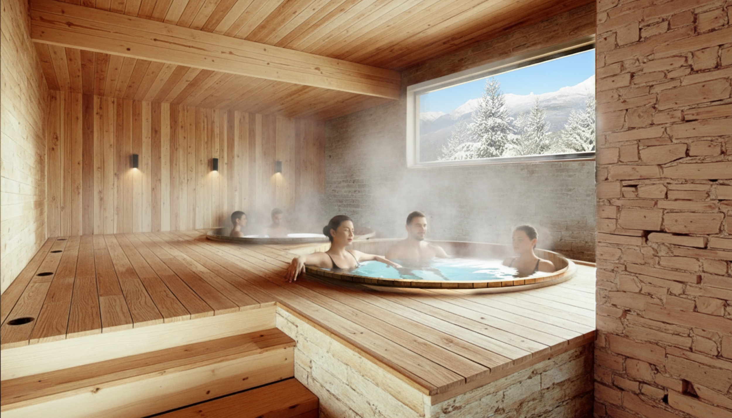 Plusieurs logements s'ouvrent sur de magnifiques terrasses panoramiques pensées comme une véritable prolongation du séjour, offrant des vues dégagées sur le paysage alpin.