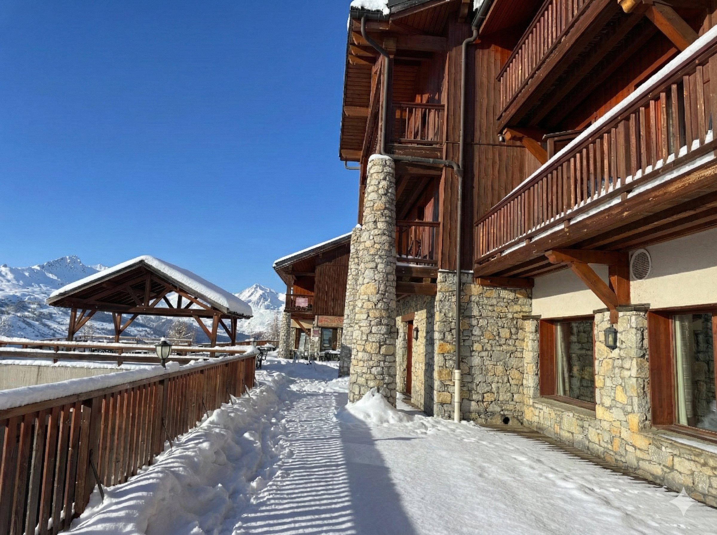 L'Écrin de Vallandry concilie l'authenticité alpine et l'élégance contemporaine dans une architecture sobre et durable. Les 17 logements ont été rénovés avec soin, privilégiant le bois, la pierre, l'ardoise et le verre, pour offrir confort, luminosité naturelle et des finitions luxueuses.